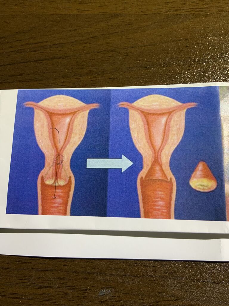 円錐切除術は写真の様に異形成がある部分を円錐状に取り除きます。